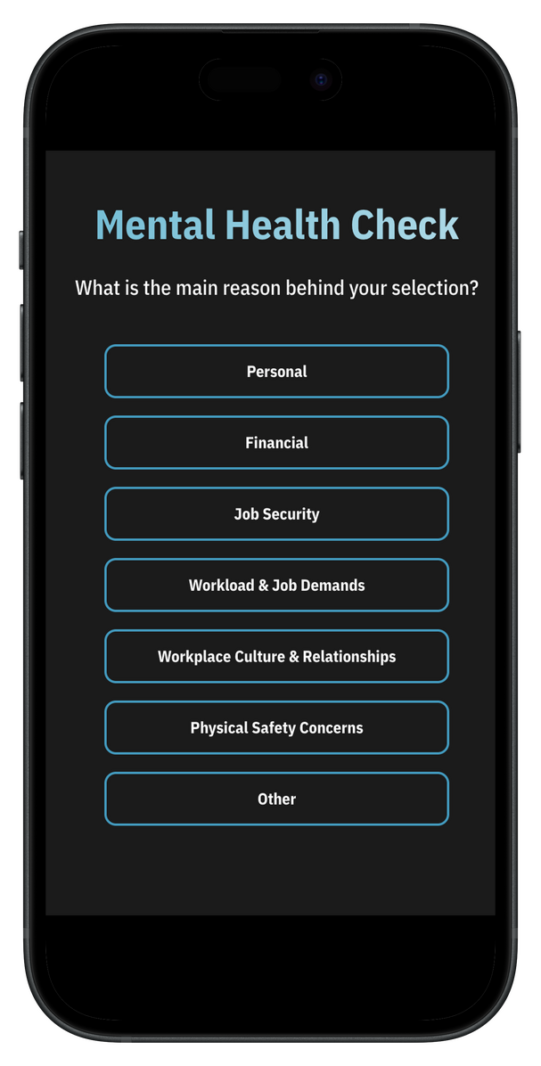 The user be prompted to answer a few follow-up questions to help better understand how they’re feeling.Follow up selections are completely customisable based on your preferences.