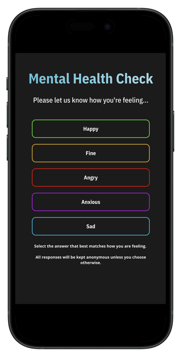 Mental Health Check InsAll answers are completely anonymous unless a user chooses otherwise.If a user selects: